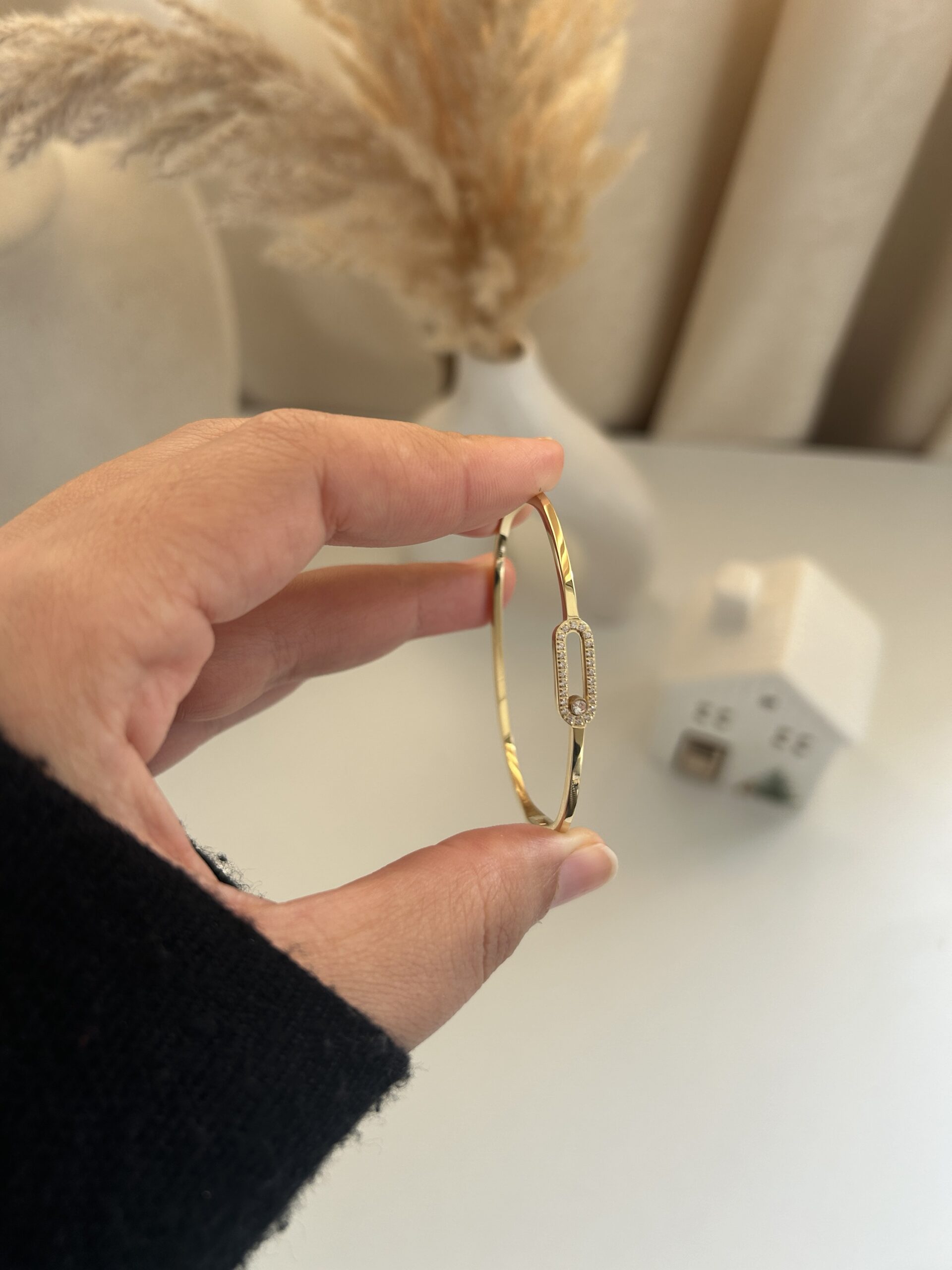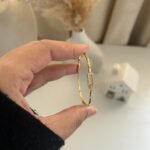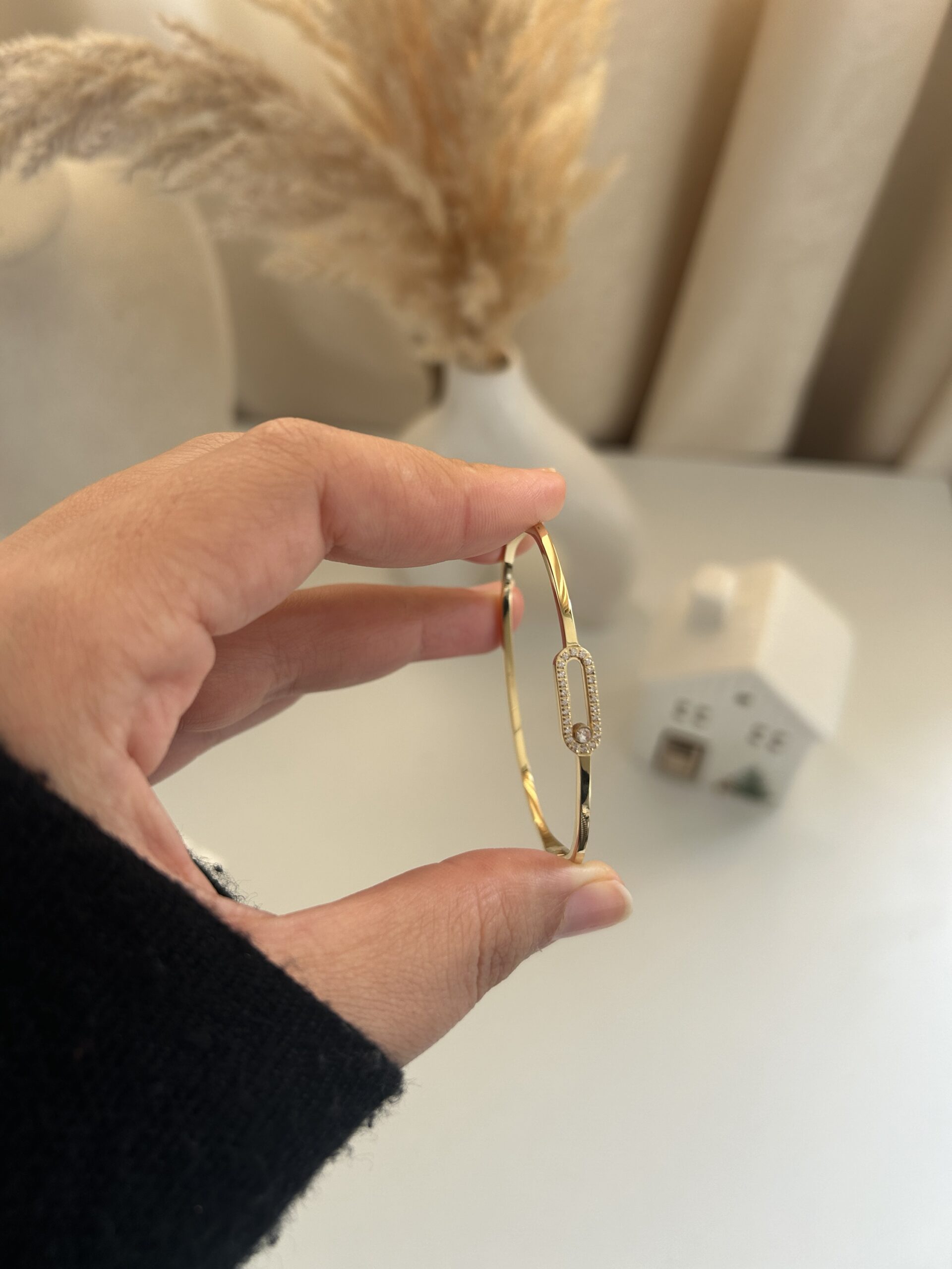 Inspiré par la haute joaillerie, le jonc Aura Infini incarne le raffinement absolu. Son design épuré en finition dorée entoure un sertissage de précision qui met en valeur un éclat central unique. Plus qu’un bijou, une signature.