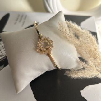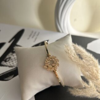 Découvrez l’élégance intemporelle du “Bracelet Éclat Torsadé”, méticuleusement conçu avec une finition dorée éclatante. Ce bijou exquis présente un motif de corde torsadée qui s’enroule gracieusement autour de votre poignet, se terminant par une section centrale ornée de petites pierres précieuses scintillantes. L’artisanat délicat et l’allure classique en font un accessoire idéal pour une utilisation quotidienne ou pour des occasions spéciales. Sublimez votre collection de bijoux avec ce mélange captivant de sophistication et de charme. Taille standard 5,8cm