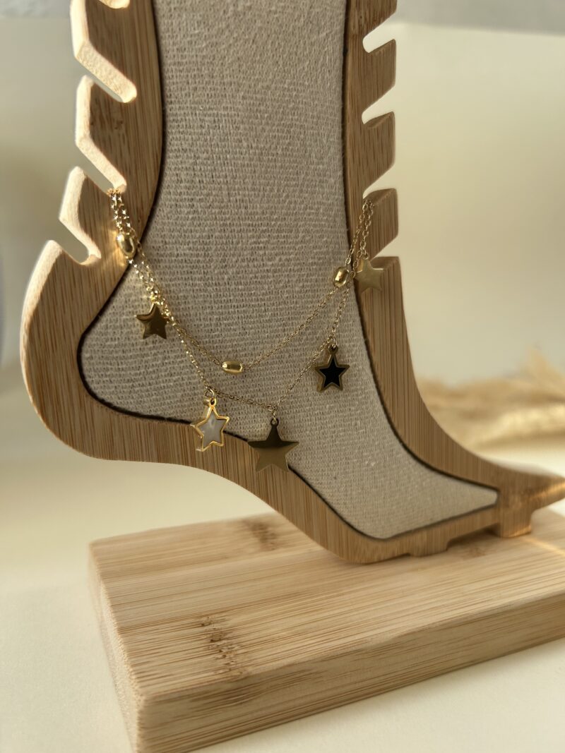 Ajoutez une touche de magie céleste à votre look avec notre bracelet de cheville Étoiles Célestes. Ce bijou délicat est fabriqué en acier inoxydable de haute qualité, garantissant durabilité et éclat. La chaîne est ornée de petits charms en forme d’étoiles et évoquant la beauté d’un ciel étoilé. Parfait pour les journées ensoleillées ou les soirées élégantes, ce bracelet de cheville apportera une note de charme et de sophistication à votre style.