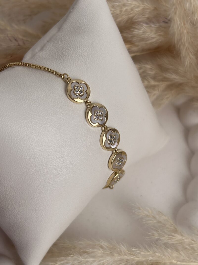 une pièce où la beauté intemporelle rencontre la modernité. Chaque maillon de cette gourmette est orné d’un délicat motif floral, rehaussé par un détail central étincelant. Fabriquée en acier inoxydable doré, elle allie durabilité et élégance. Parfaite pour ajouter une touche de sophistication à vos tenues quotidiennes ou pour sublimer vos soirées.