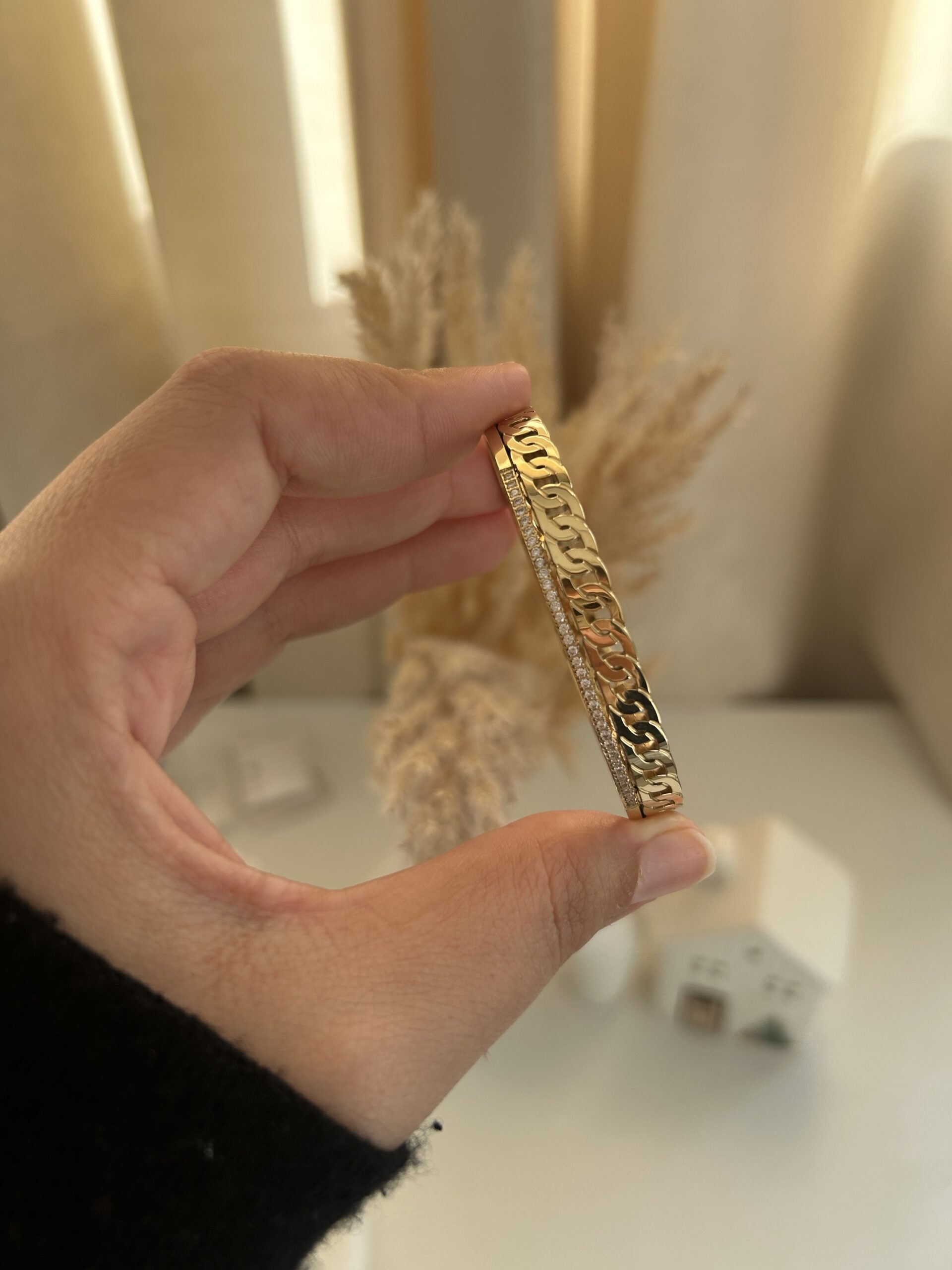 Élégant et intemporel, ce bracelet en acier inoxydable doré associe une chaîne gourmette au design affirmé et une rangée de zircons scintillants pour une touche de raffinement. Son fini brillant capte la lumière avec subtilité, offrant un équilibre parfait entre caractère et élégance.