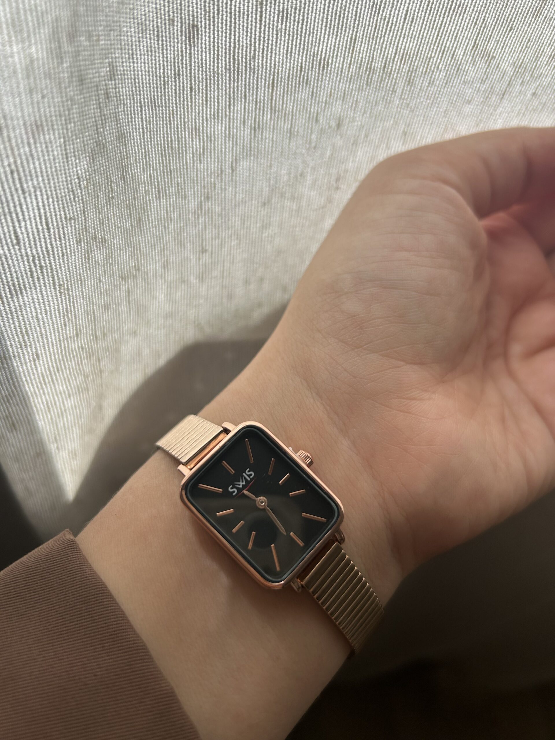 Élégante et affirmée, Noctis est la montre qui sublime vos looks avec son cadran noir profond et son bracelet en acier inoxydable rose gold.