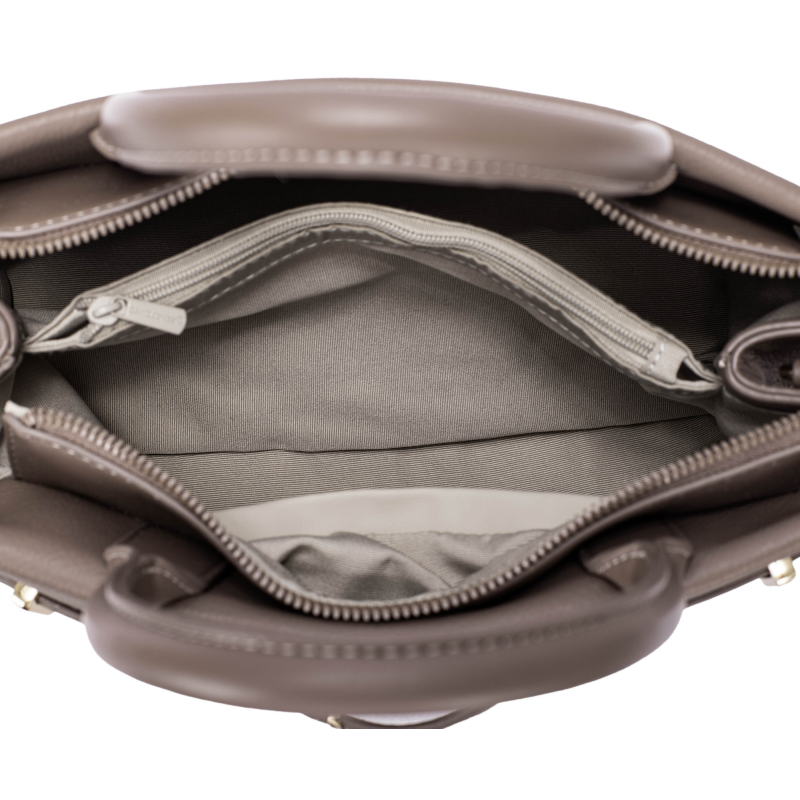 Le modèle prestige Bag séduit par ses courbes arrondies, sa matière synthétique grainée agréable au toucher et sa ceinture décorative pour un supplément de style. Format compact et organisation efficace pour accompagner toutes vos sorties.