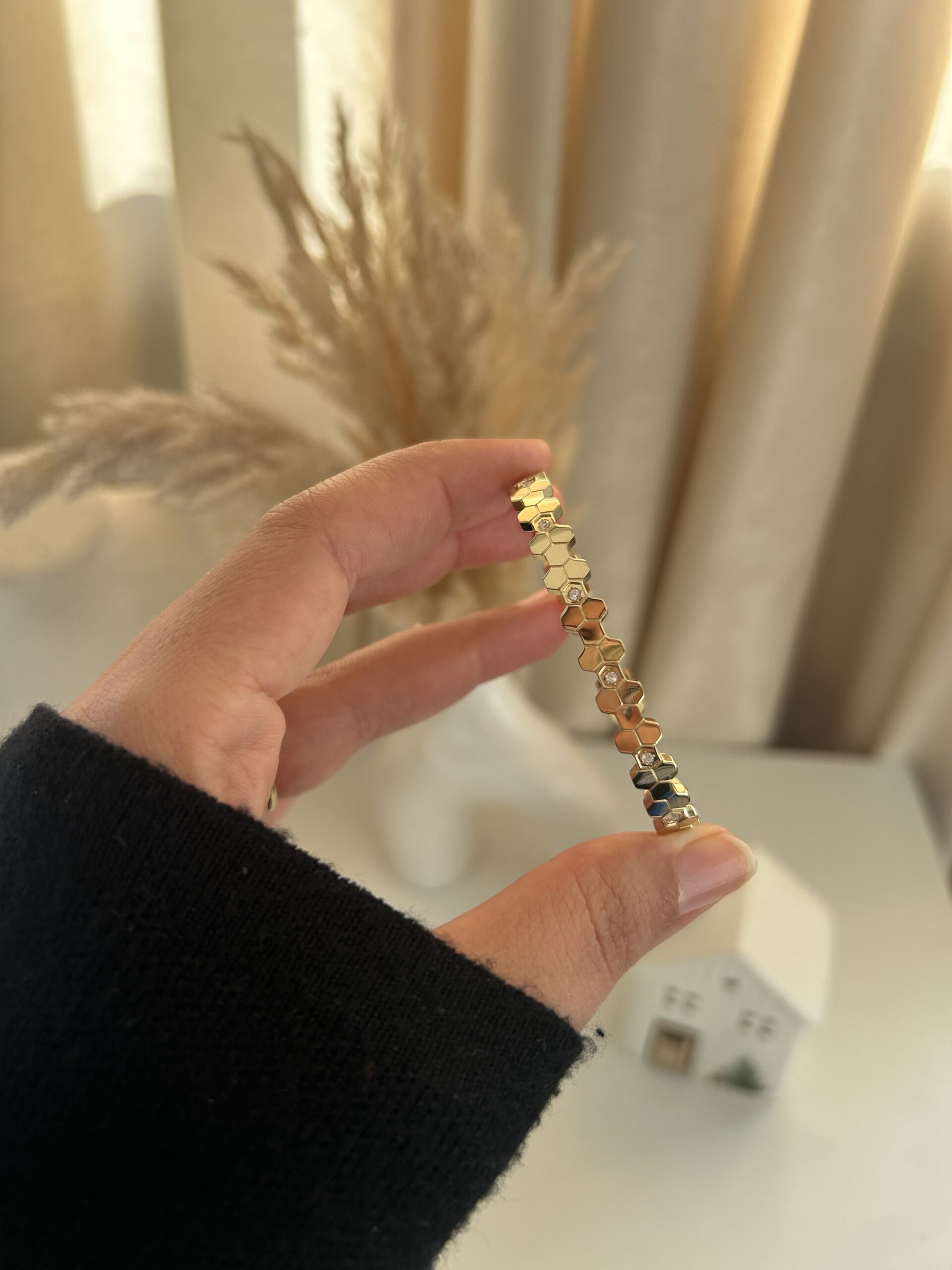 L’alliance parfaite de la rigueur géométrique et de l’éclat pur. Le bracelet Éclat Hexagone se distingue par sa structure alvéolée signature, évoquant un luxe contemporain et sophistiqué. Ses détails minutieux et son éclat discret en font une pièce de caractère qui rehausse instantanément une tenue chic. Un véritable chef-d’œuvre de précision à porter seul ou en accumulation.