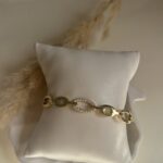 Élégant et raffiné, ce bracelet à maillons dorés se distingue par un maillon central orné de strass étincelants. Subtile touche de brillance, il capte la lumière à chaque mouvement et apporte une note sophistiquée à votre poignet. Un bijou moderne et intemporel, parfait pour sublimer vos tenues de jour comme de soirée.